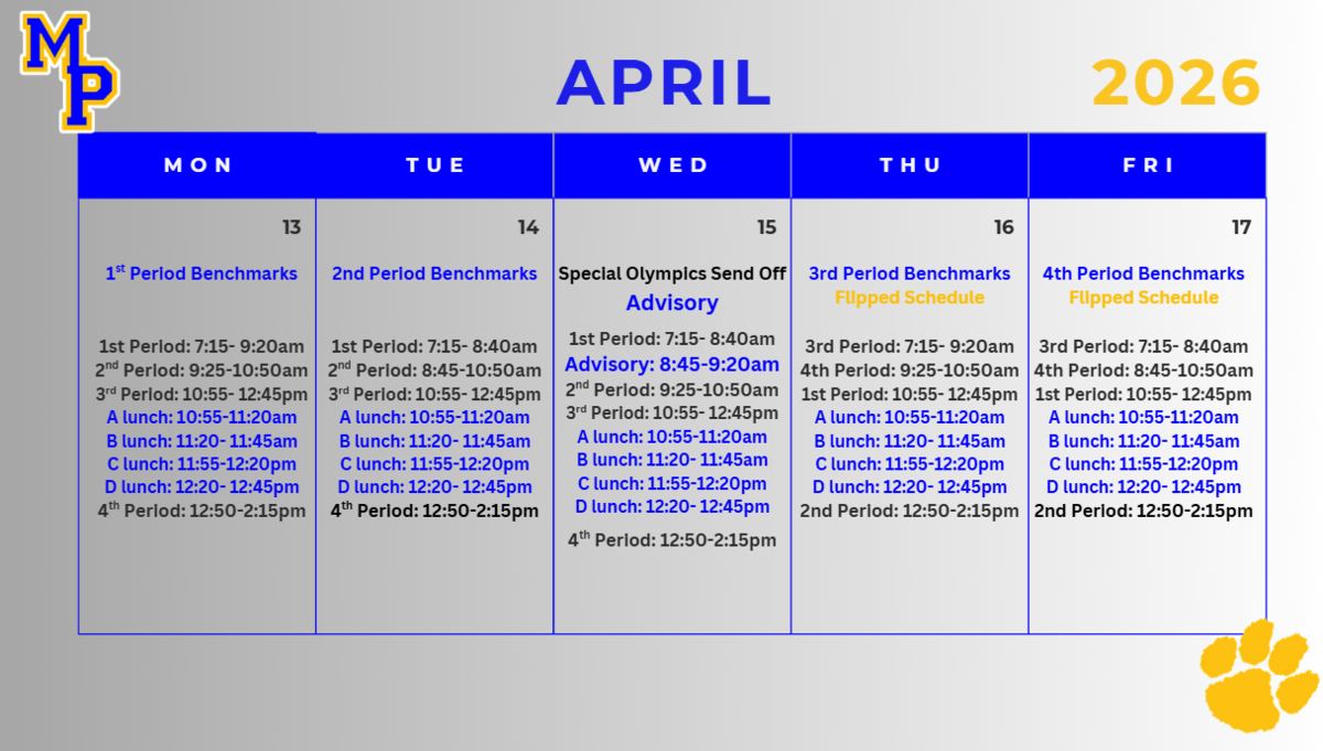 FRIDAY, APRIL 17, 2026We are excited to invite families and friends to our Senior Walk & Parade! Please help cheer on our seniors as they walk from MPMS to MPHS!PARADE:Parents/Families/Friends ...