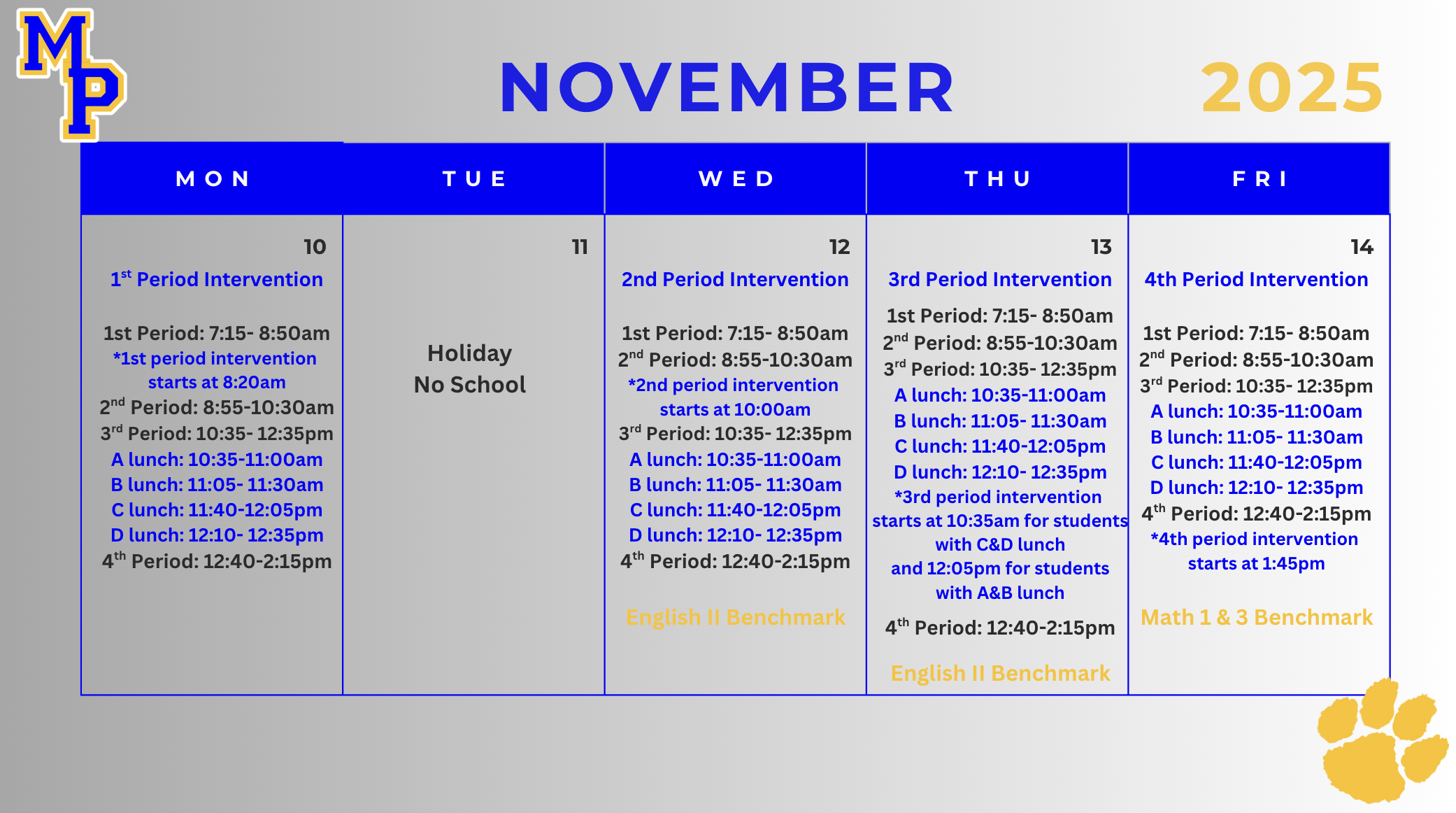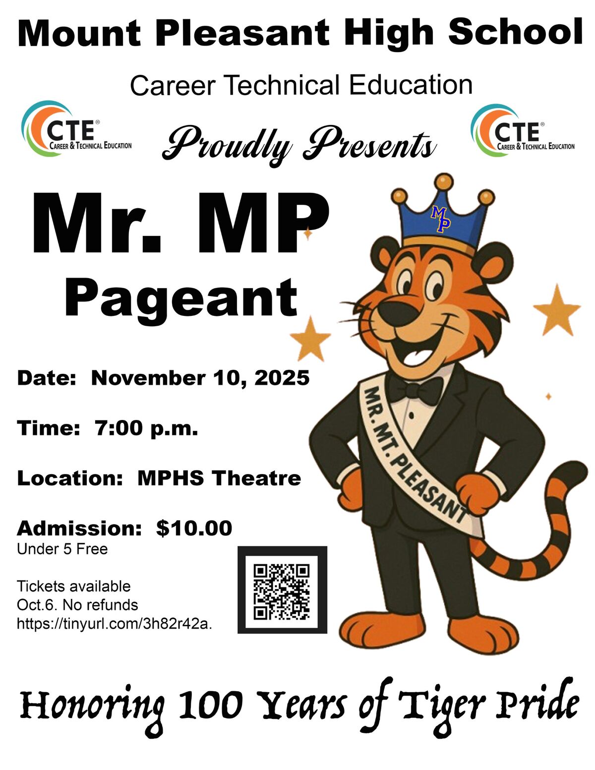 MPHS proudly presents the Mr. MP Pageant on November 10th at 7pm. Tickets are $10 and children under 5 are free. Tickets will be available October 6th.