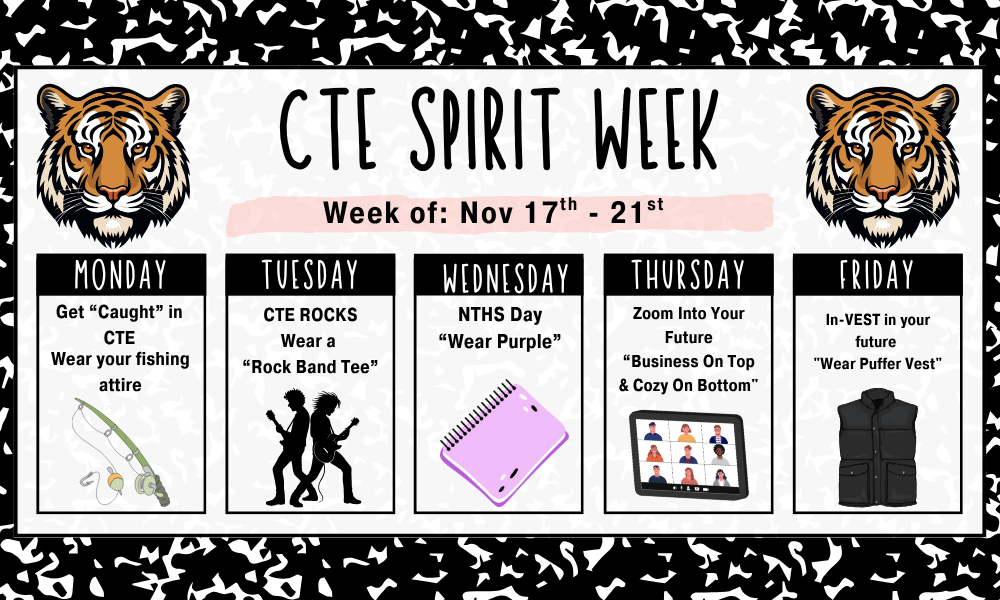 Please join us as we celebrate Career Development Month by participating in the CTE Spirit Week Nov 17 -21, 2025!