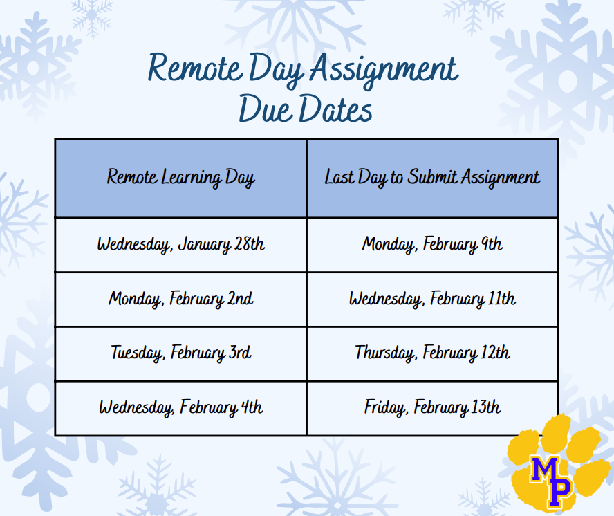 These are due by March 27th for 2nd semester courses. See Mrs. Lamb with any questions.