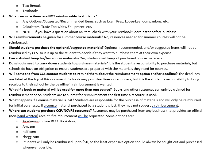 Students taking College and Career Promise classes this Spring through RCCC or NCVPS who had to purchase a book or pay a lab fee, please complete this textbook reimbursement request by March 27th.